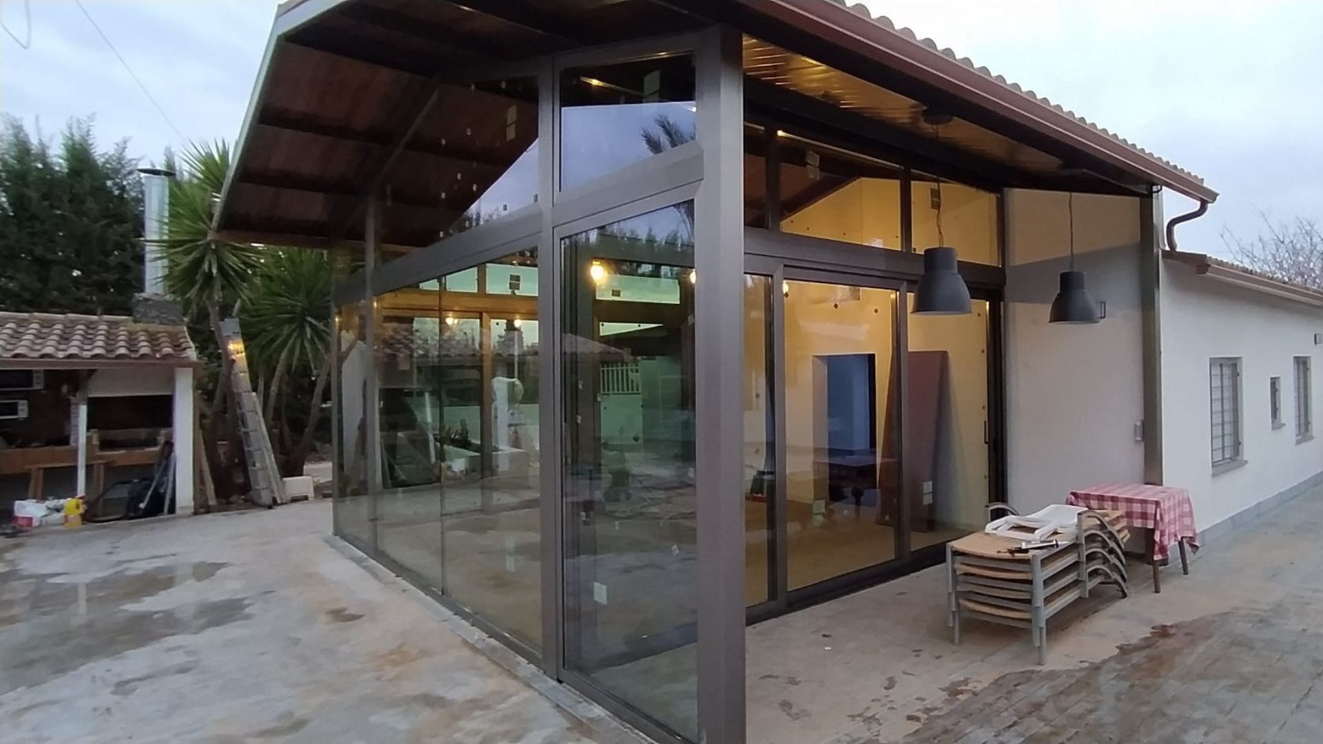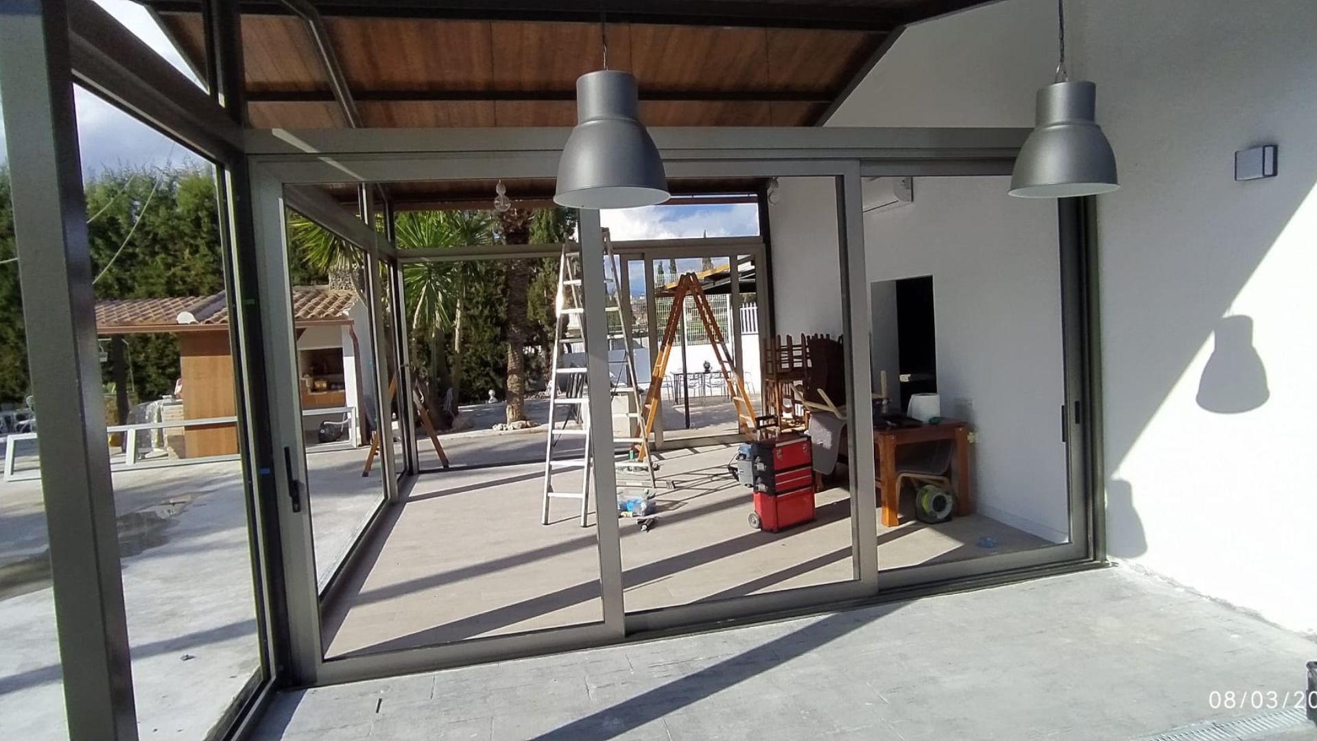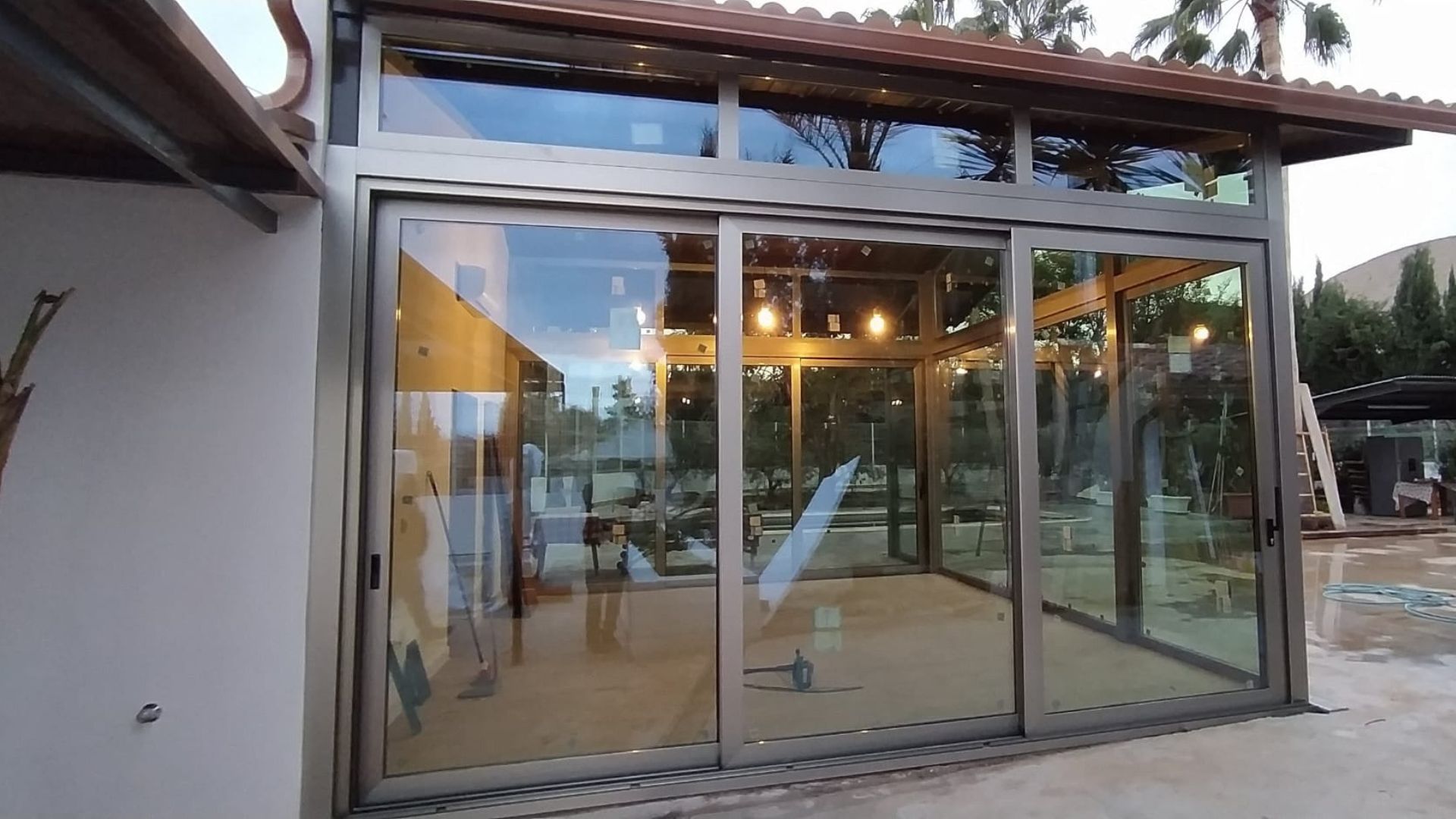 El cerramiento se ha ejecutado con carpintería serie elevable 150, ofreciendo grandes dimensiones, apertura suave y máxima estanqueidad