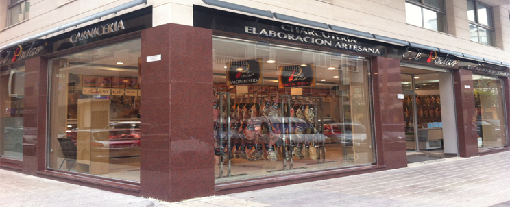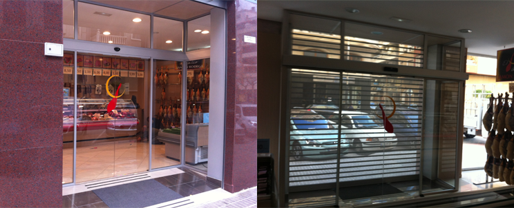 Trabajo realizado en una carniceria en orihuela y el la uqe el proyecto requería la colocacion de escaparates realizados en perfileria fija acerada pulida , acristalados con vidrio 6+6 laminados de seguridad .