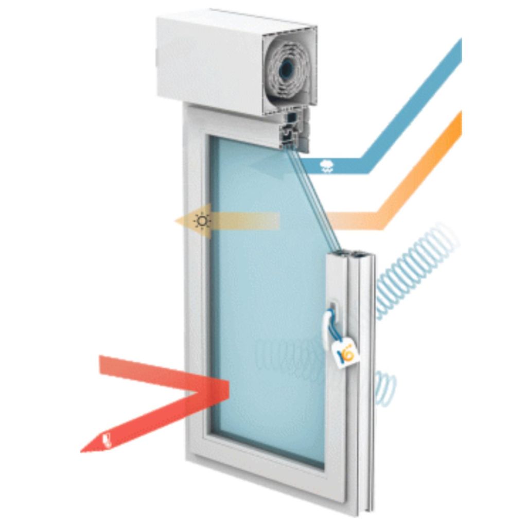 PVC reforzado en el interior del marco mediante hilo de acero con envoltura de pvc rigído inyectado de alta densidad. Consiguiendo así sustituir el refuerzo metálico y evitar tramitancias térmicas, dilataciones de la perfilería y reduciendo el peso.