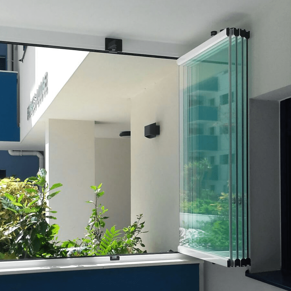 Protege de la suciedad, el viento, el ruido, la lluvia y otras molestias que impiden que disfrute de su terraza todo el año. Fácil de limpiar, las hojas se limpian desde dentro con mucha facilidad y seguridad, tanto la cara exterior como la interior. Aumenta la temperatura en invierno, en verano la ventilación es total. La correcta ventilación del sistema evita la condensación de humedad dentro de la terraza. Los días con calor los cristales se pueden abrir total o parcialmente.