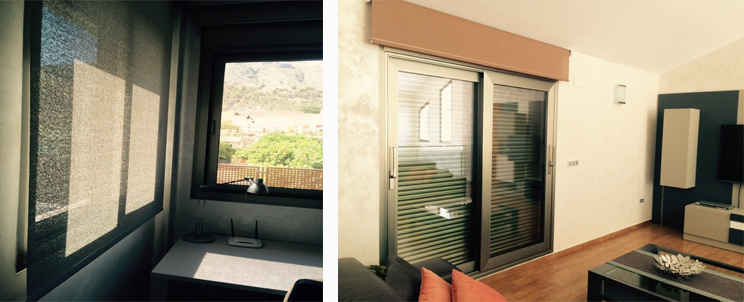 En la primera imagen se observa una cortina stor motorizada y la segunda imagen de la composición observamos la creación de una ventana elevable con cortina stor motorizada.