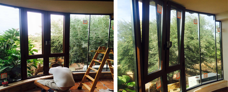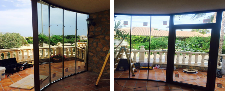 Trabajo que en julio anticipamos por nuestra página de Facebook con la representación virtual del proyecto. El trabajo trata de una reforma en un chalet con el cambio de ventanas y cerramientos de porches simulación muro cortina. En las ventanas estrenamos nuestra nueva serie gama alta de rotura de puente térmico y mayor campo de visión (consultar más información).