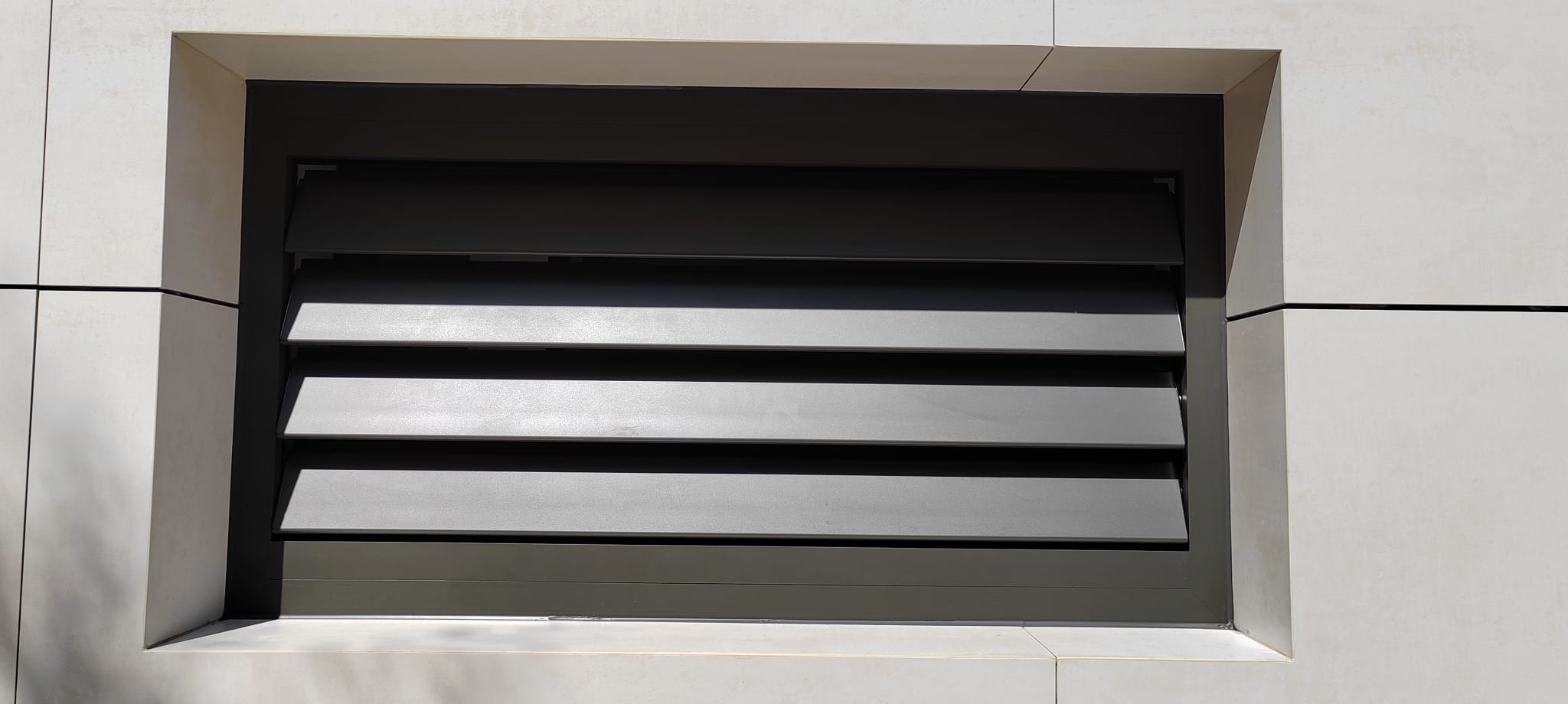 El diseño se completa con lamas de 140 mm y persianas ocultas en obra, fabricadas en extrusión autoblocante y con capacidad de hasta 400 kg por paño, reforzando la integración estética y funcional del conjunto.